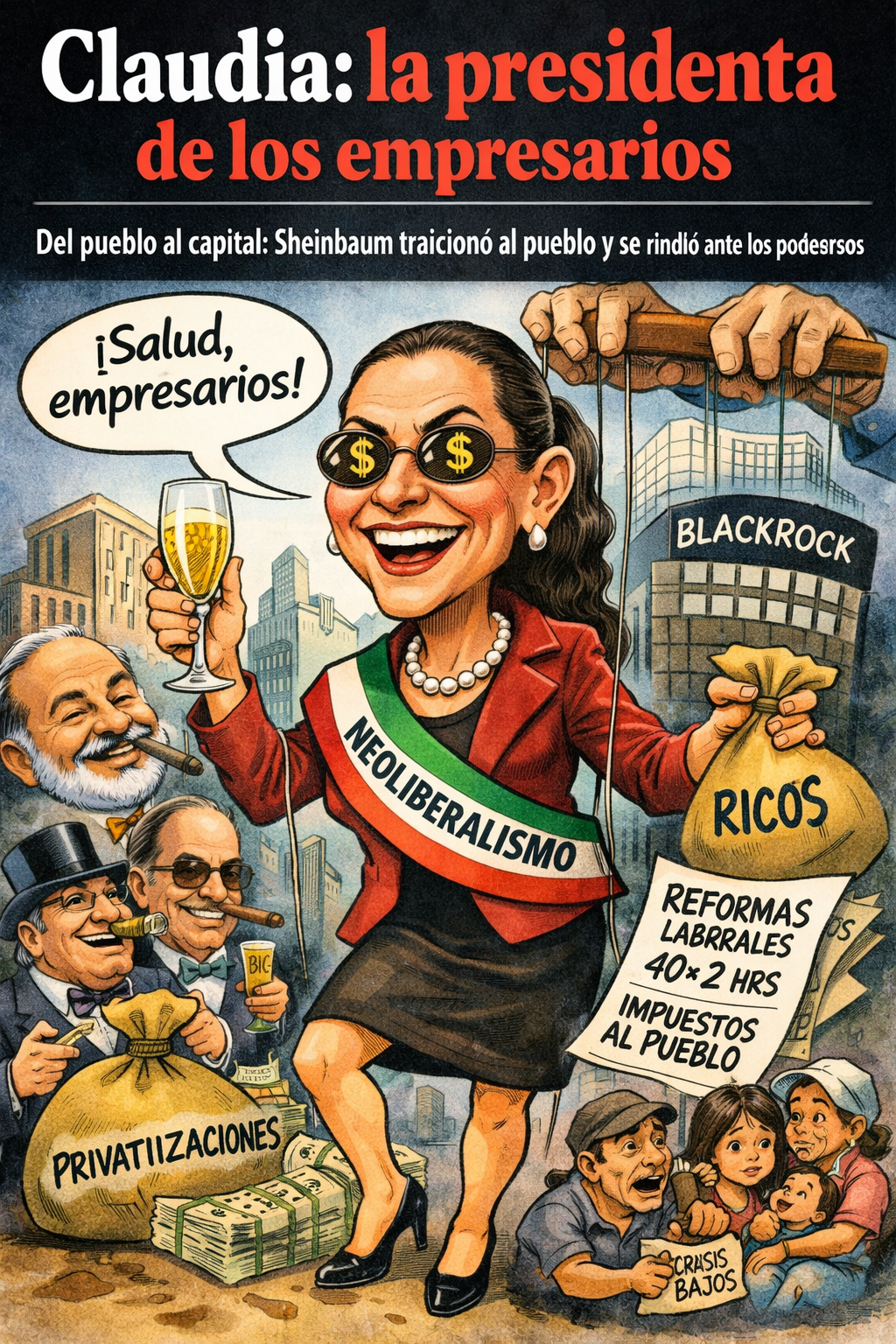 Esto no es transformación. Es continuidad neoliberal con rostro progresista. Si el rumbo no cambia, la historia no recordará a Claudia Sheinbaum como la presidenta del pueblo, sino como lo que ya empieza a ser evidente: la presidenta de los empresarios, una mandataria sin logros propios, sostenida por herencias ajenas y comprometida con proteger a quienes siempre han tenido todo.